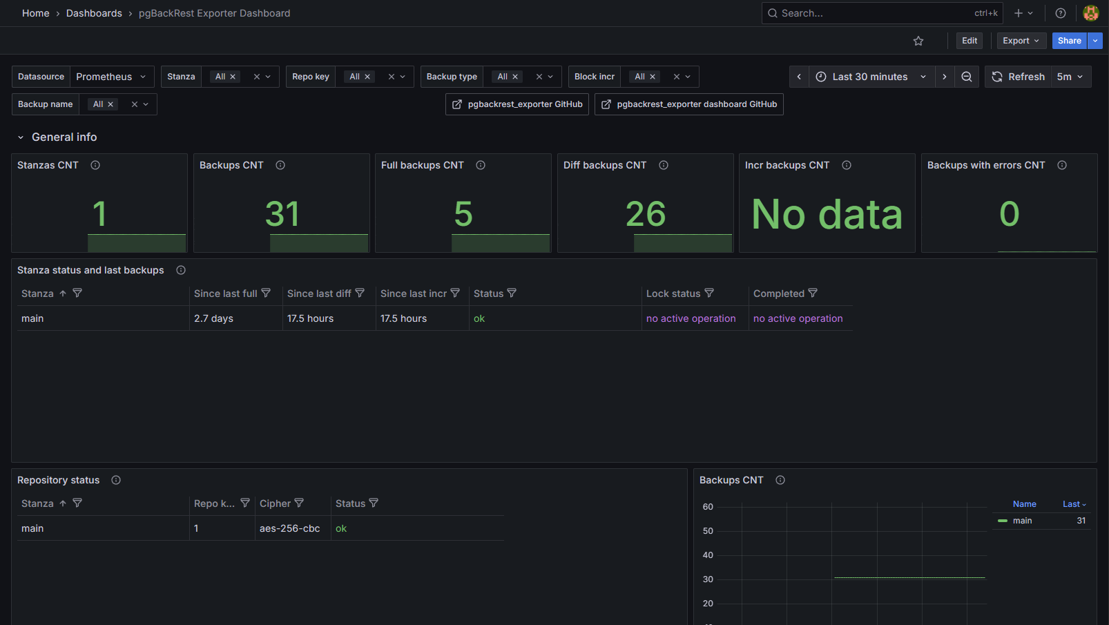 這邊使用 pgbackrest_exporter 將資訊串到 Prometheus